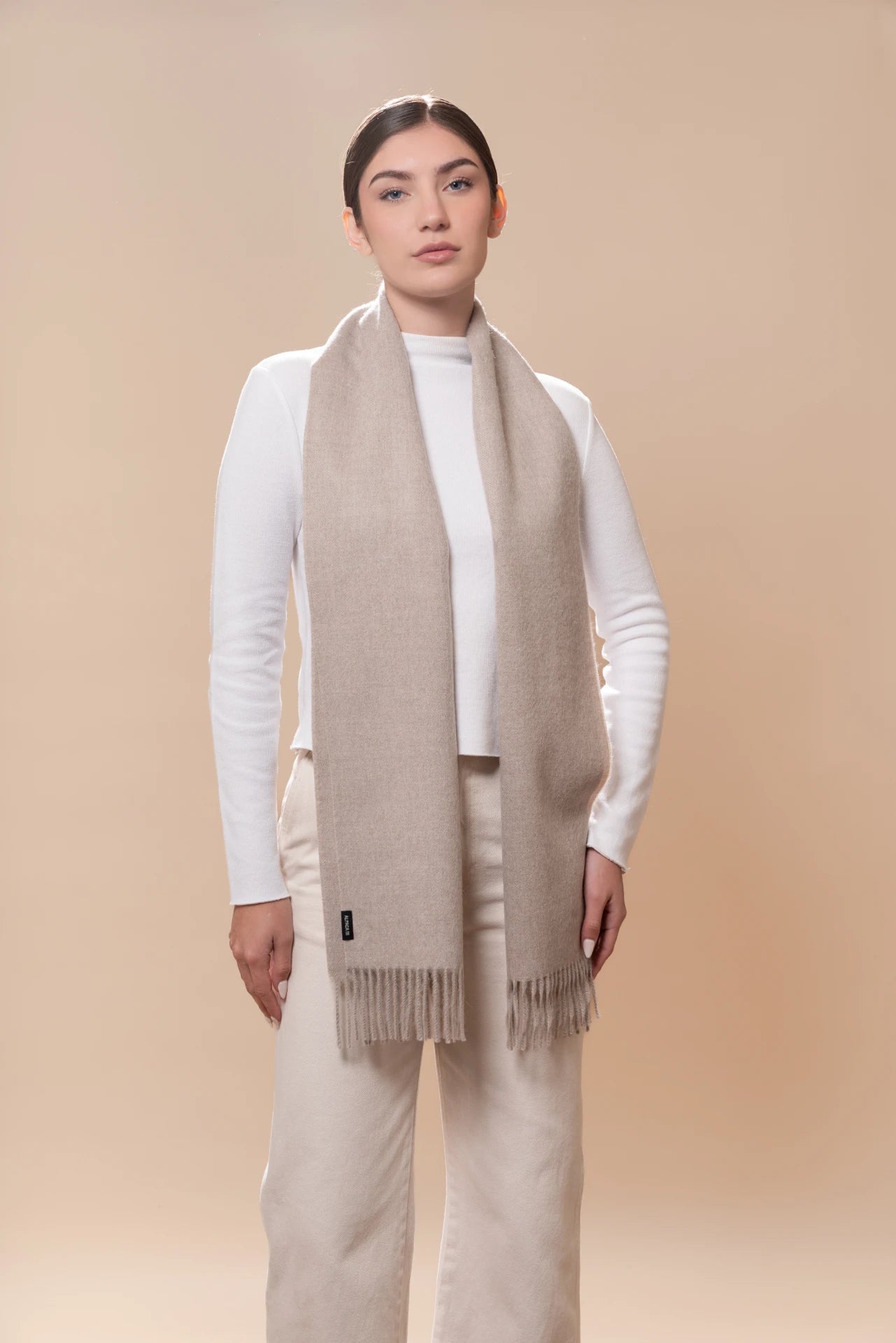 Experience exceptional warmth and softness with the Scarf 100% Baby Alpaca Classic. Crafted from pure baby alpaca fibers, this scarf offers superior insulation while remaining lightweight and breathable. Its natural hypoallergenic properties ensure comfort for sensitive skin, making it an ideal accessory for cold climates. Designed with timeless elegance, it combines luxury and practicality for everyday use.